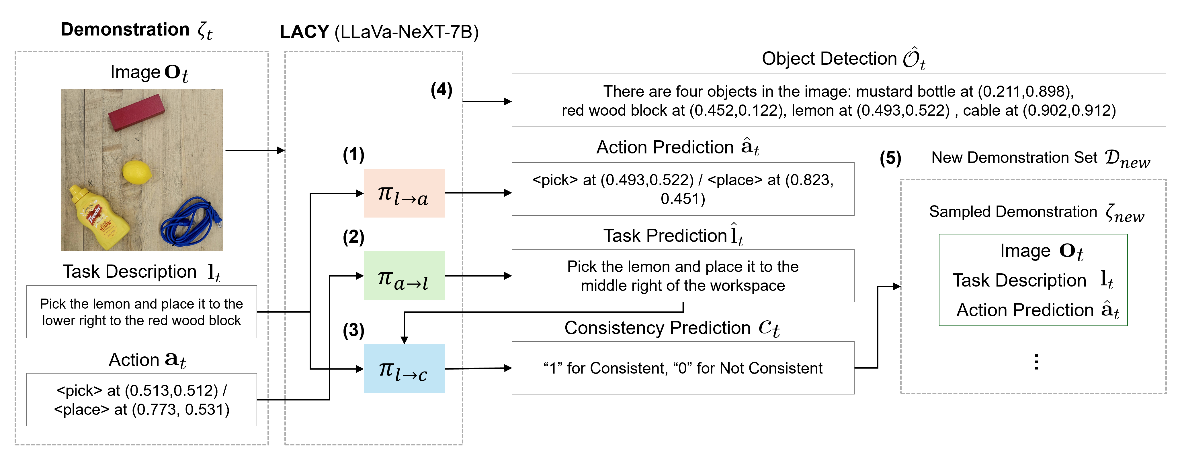 By learning from these self-assessments, LACY continuously refines its understanding of how language and action correspond, leading to more reliable and generalizable behavior.