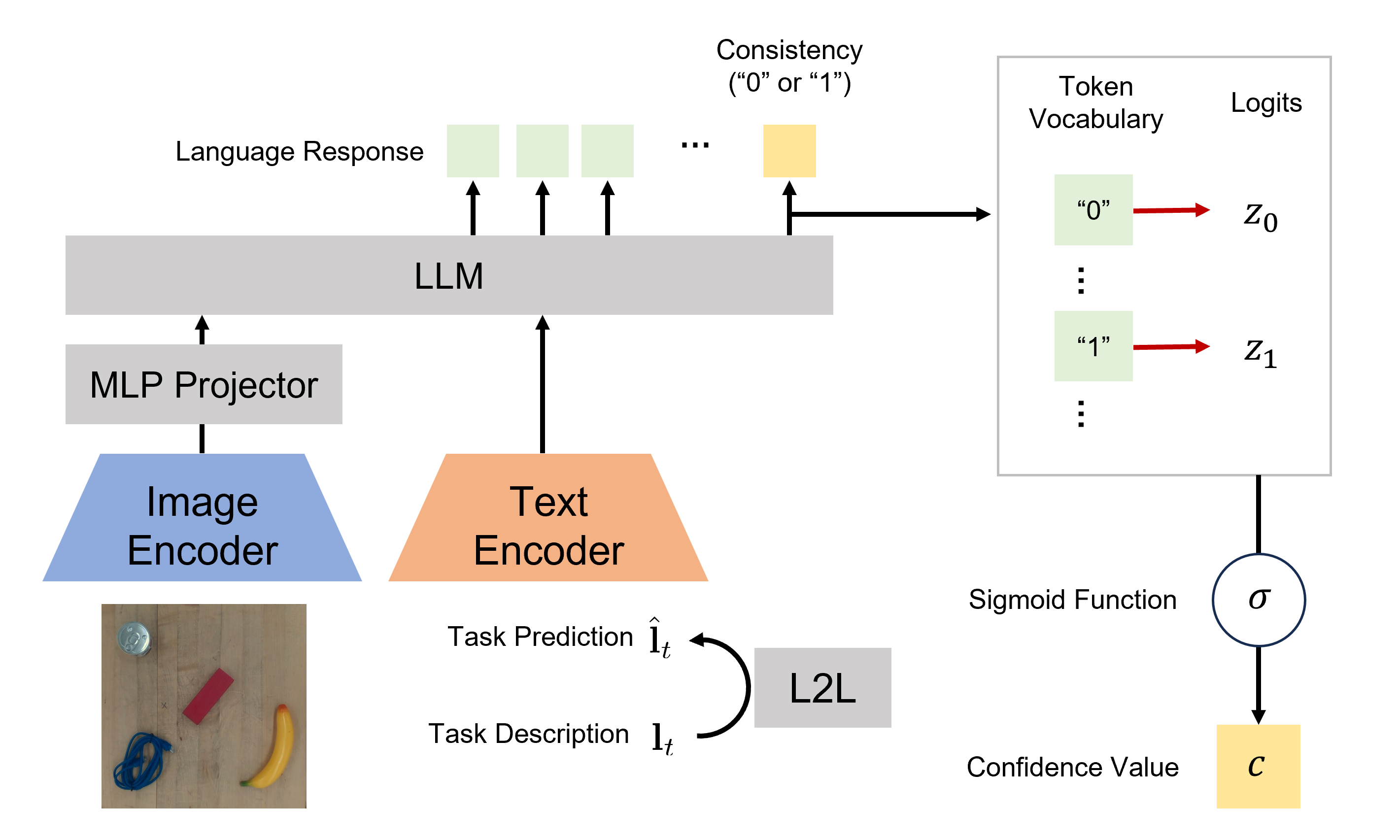 To make self-verification reliable, the L2C module also estimates how confident the model is in its consistency judgment.